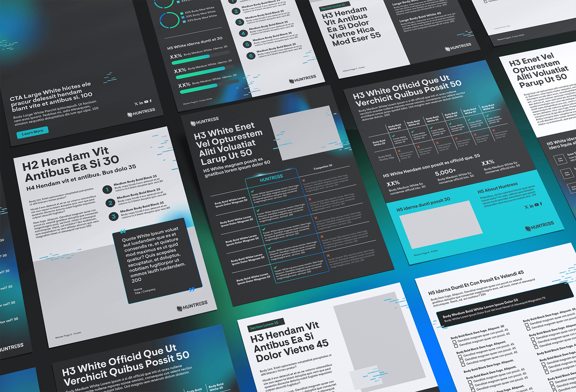 I designed and optimized a full suite of Marketing Templates for Huntress: ebooks, datasheets, whitepapers, reports, guides, and case studies.